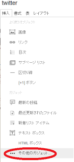 7. サイトの編集画面に戻り、Twitterタイムラインを表示したいページの編集画面から「その他のガジェット」を選択。