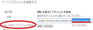 8. 「URLを指定してガジェットを追加」から先ほどのダウンロードアドレスを入力(ただし末尾側の”?”以降は削る)。「追加」ボタンを押す。