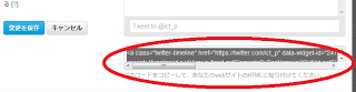 13. Twitterのウィジェット設定画面に戻り、上記アドレスを「ドメイン」の部分へペーストして「変更を保存」。