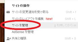 4. Google Sitesで自分のサイト編集画面から「その他 > サイトを管理」を選択。